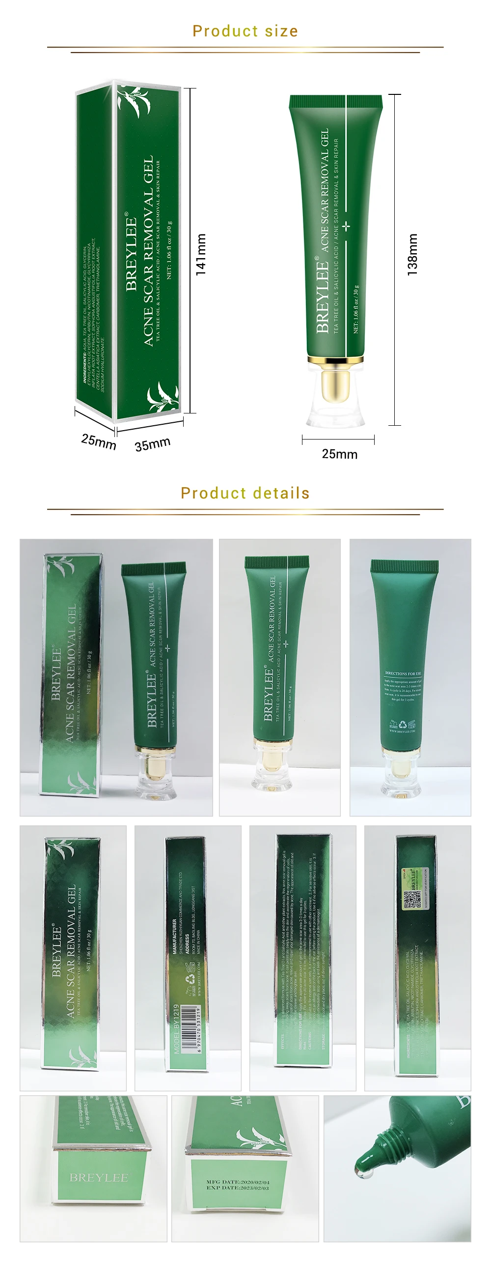 BREYLEE Acne Scar Removal Gel Tea Tree breylee acne treatment gel