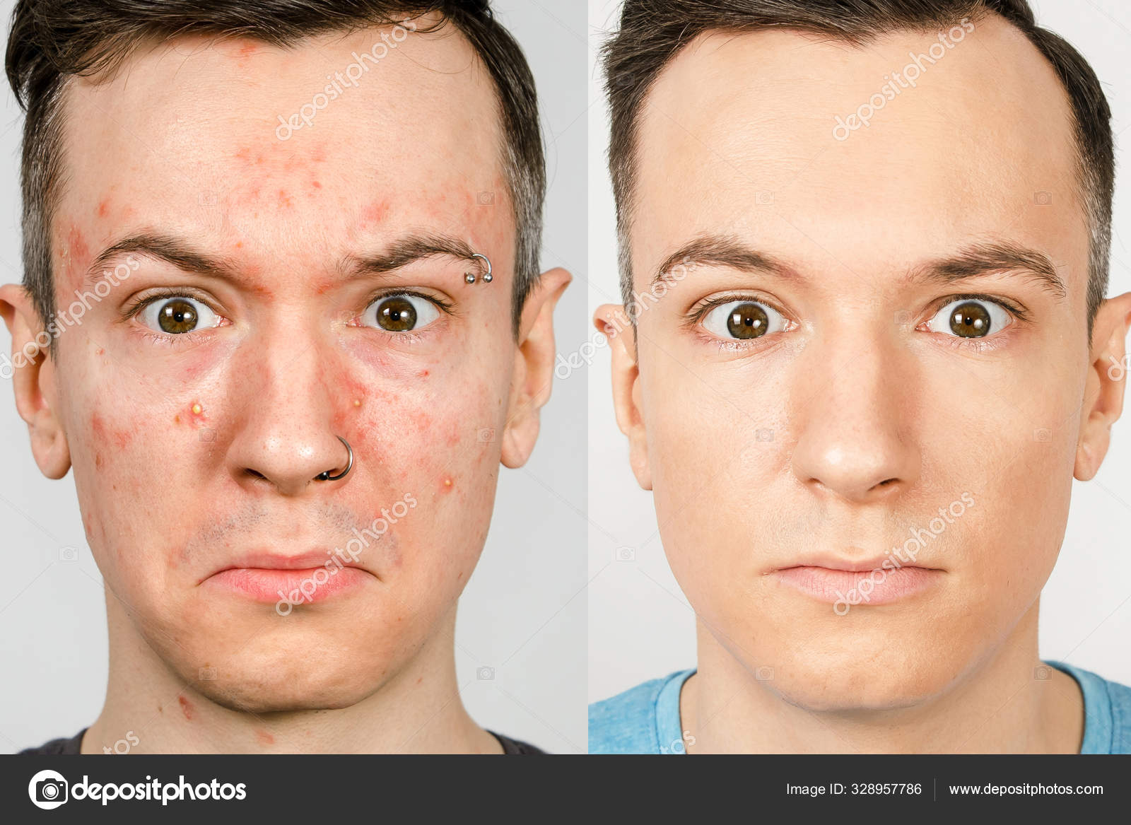 Teenage boy with acne problem on white guy with acne