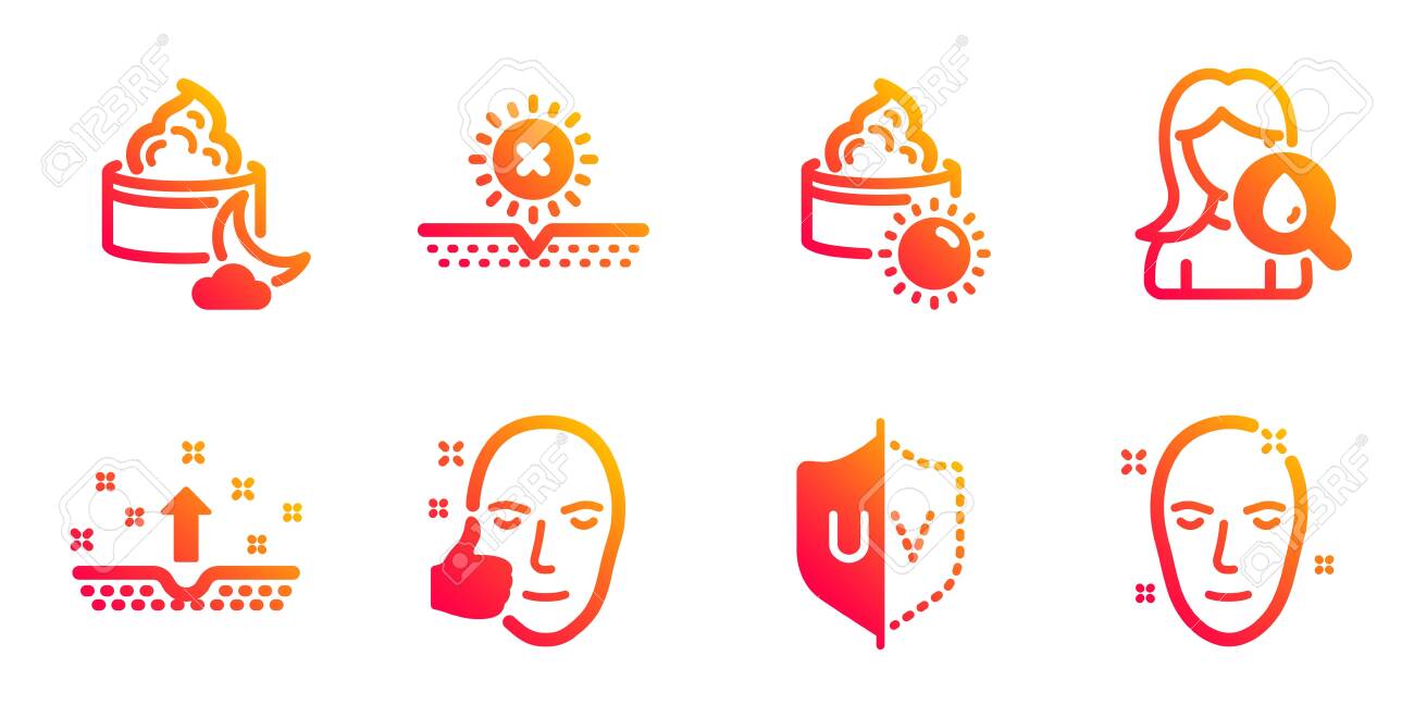 Healthy Face Line Icons Set. No Sun face clean night cream