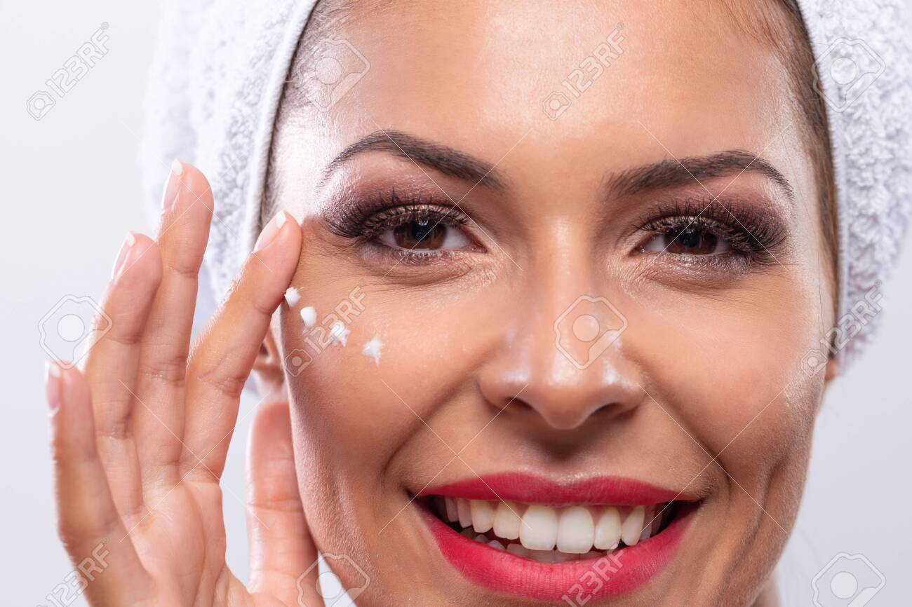 Pretty Woman With Dots Of Face Cream face dot cream