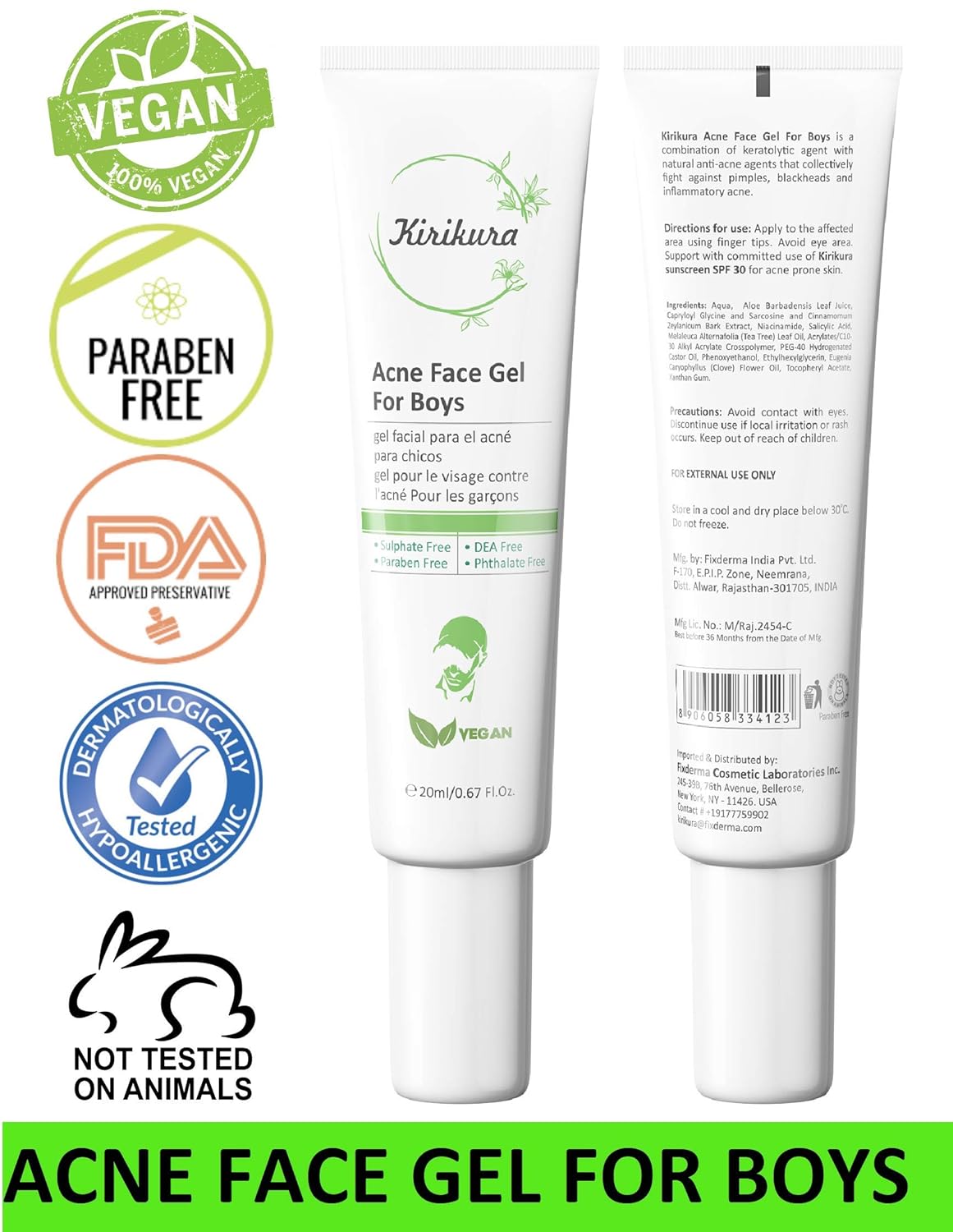 KIRIKURA Vegan ACNE Face Gel for Boys natural acne fighting agents