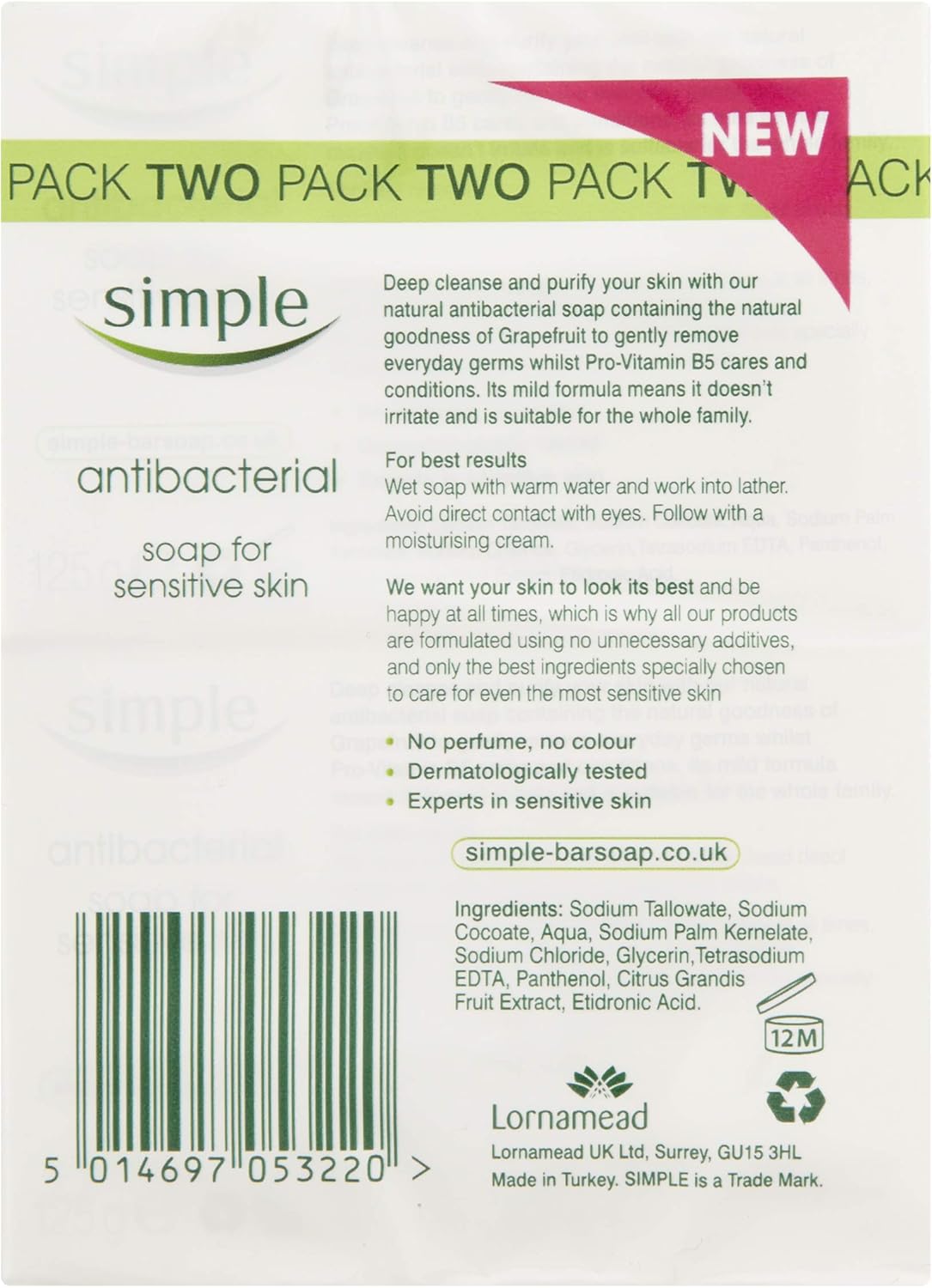 Antibacterial Soap - 2 x 125g simple soap antibacterial