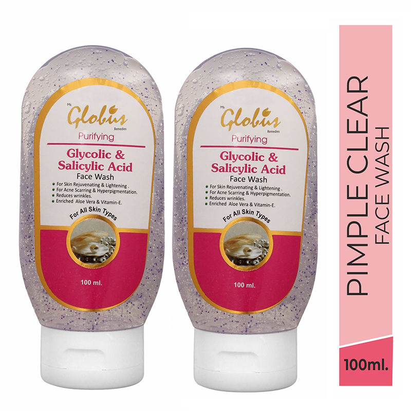 Globus Naturals Pimple Clear Glycolic \u0026 salicylic acid glycolic acid face wash