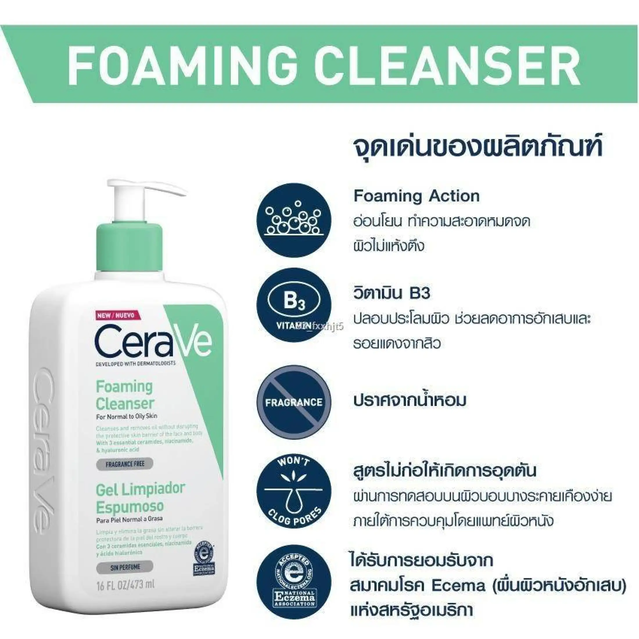 CERAVE - ผลิตภัณฑ์ทำความสะอาดผิวหน้าและผิวกาย cerave foaming cleanser pantip