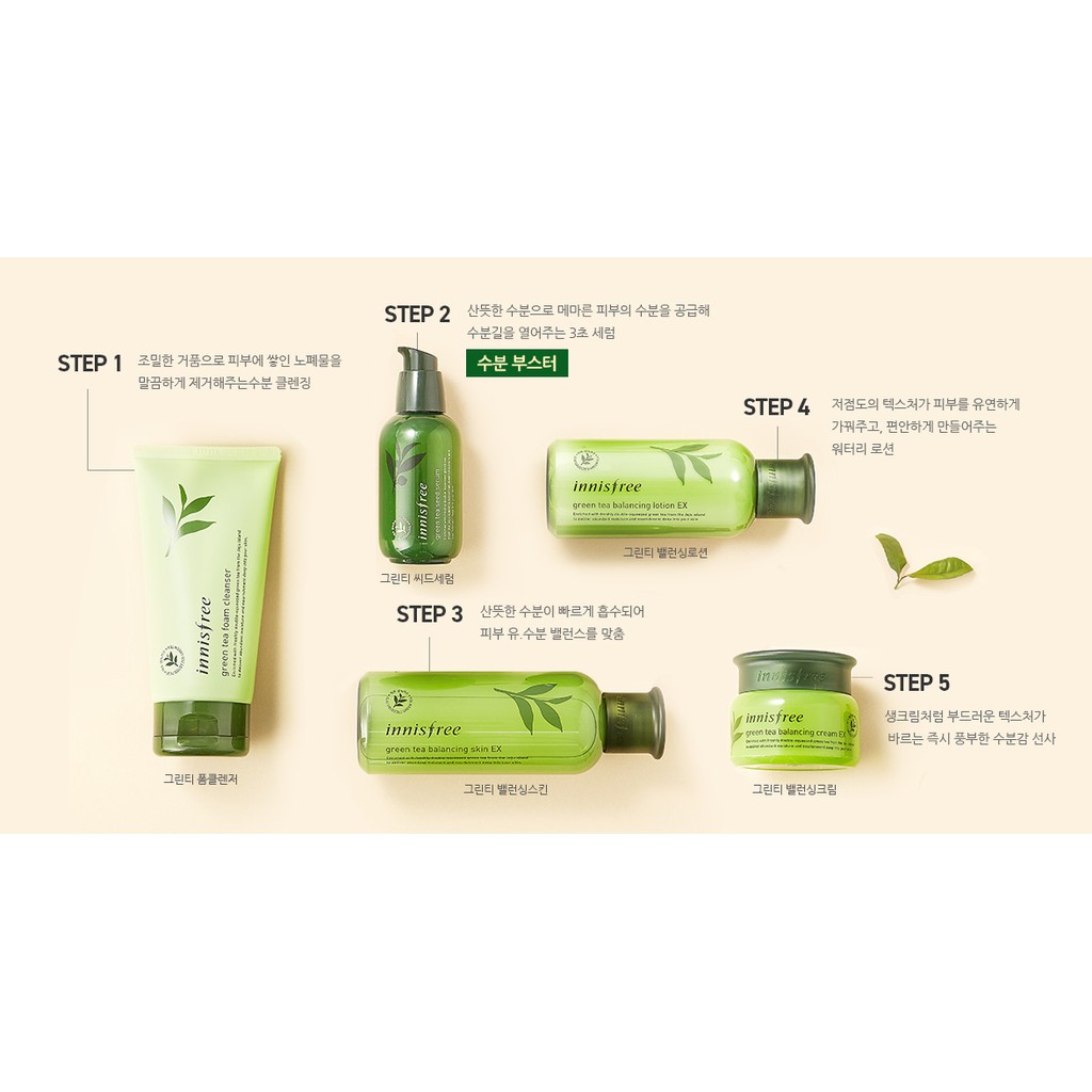 innisfree green tea set steps