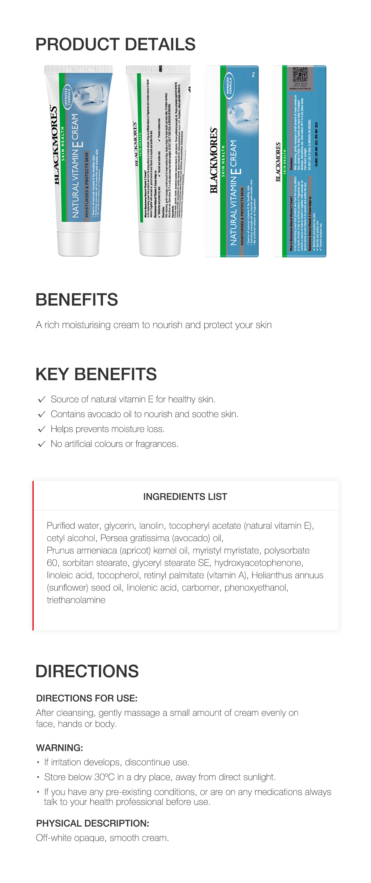 Blackmores Natural Vitamin E Cream 50g massage cream chemist warehouse