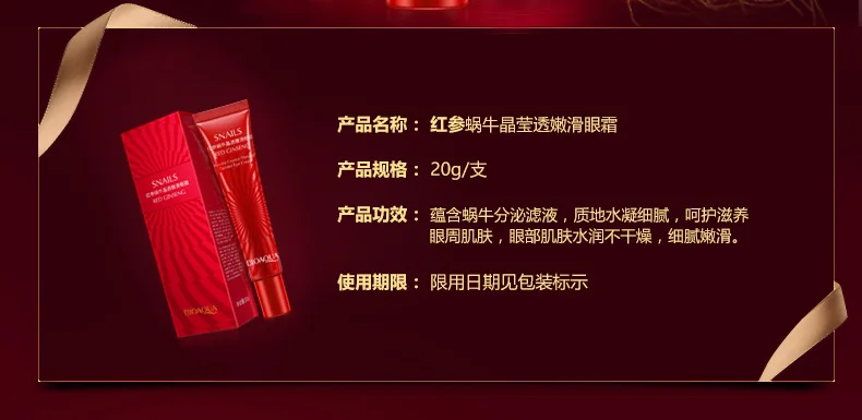 BIOAQUA Red Ginseng Eye Cream Snails bioaqua snail red ginseng eye cream