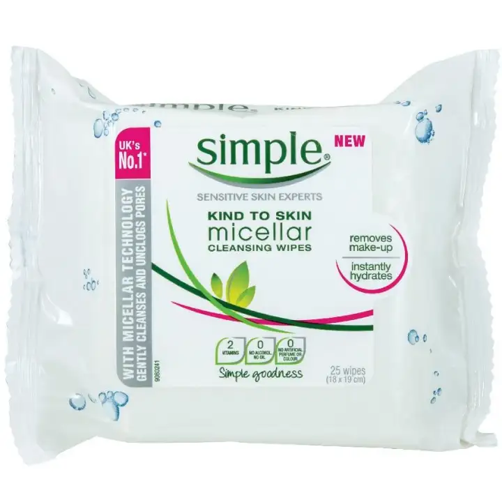 Simple Micellar Cleansing Wipes 25'S simple micellar wipes