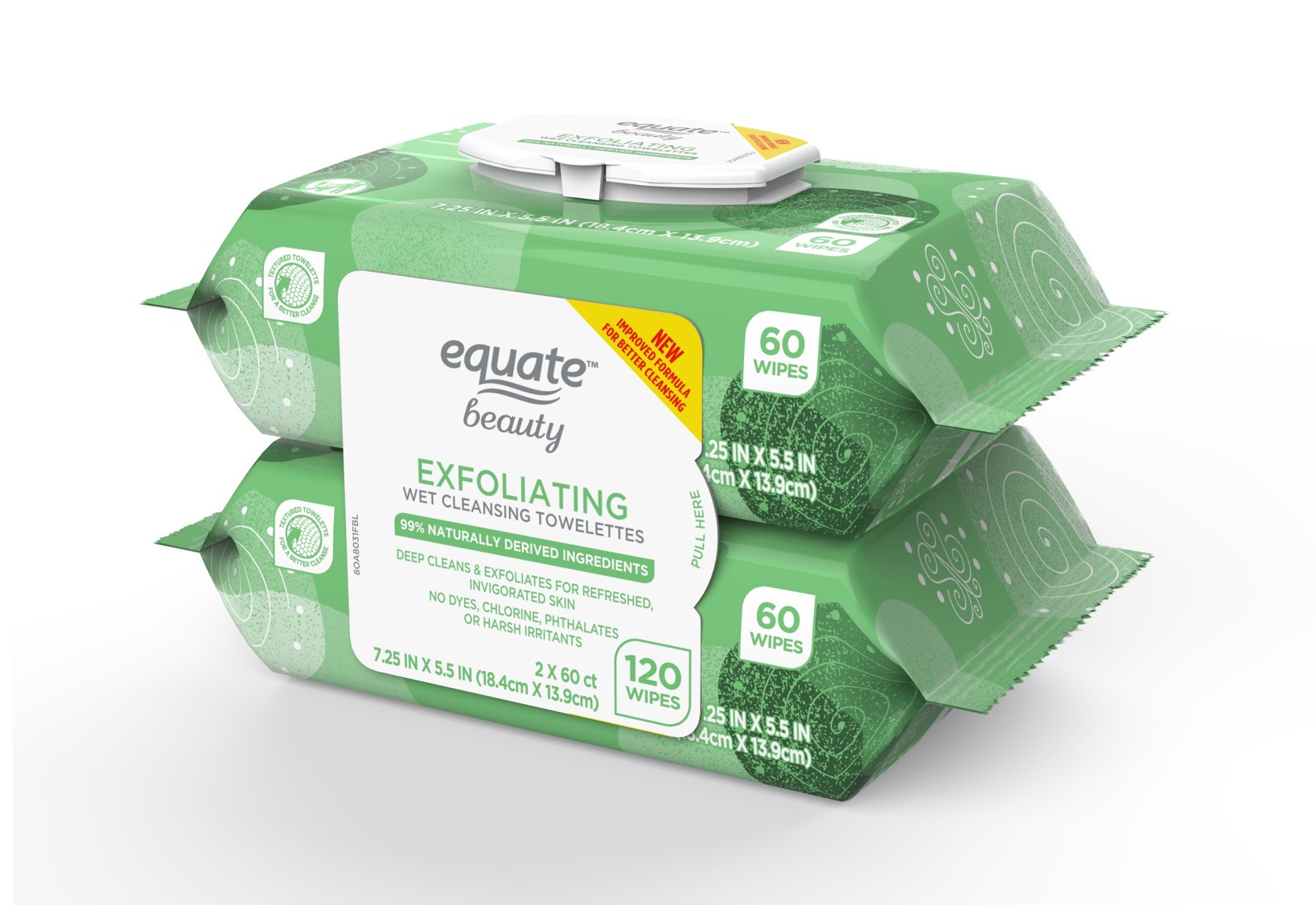 120 Count, 2 Pack Equate Beauty exfoliating makeup remover wipes