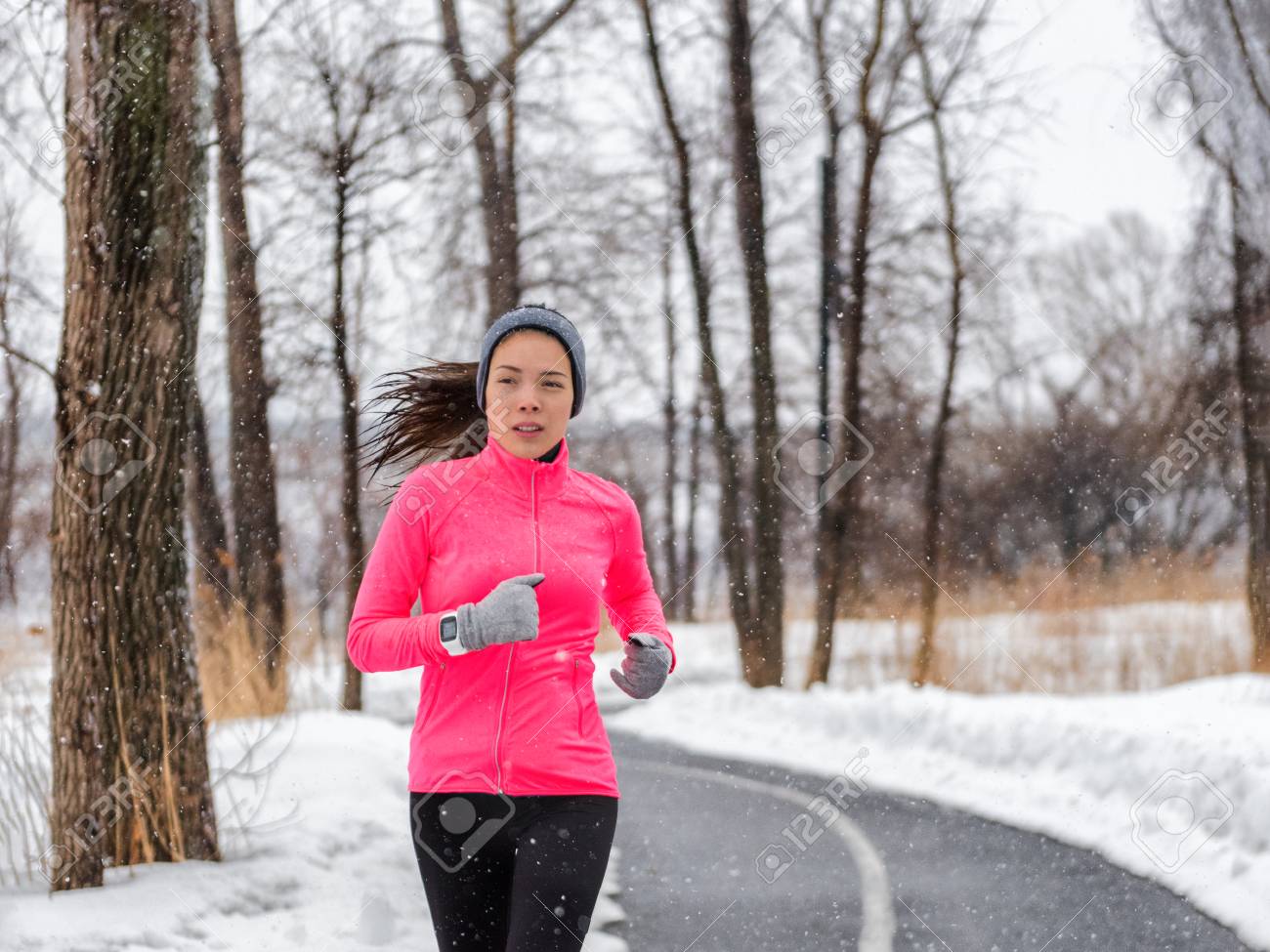 Young Asian Chinese Adult Woman Runner jogging winter jacket
