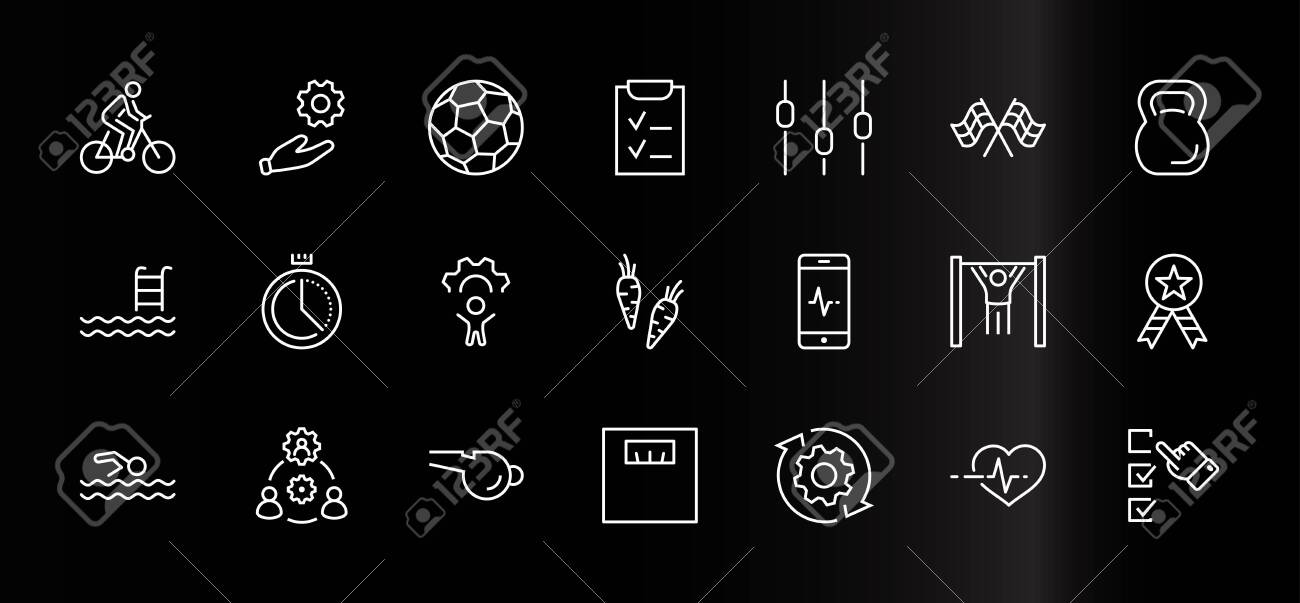 Set Of Fitness Vector Line Icons kettlebell cycling