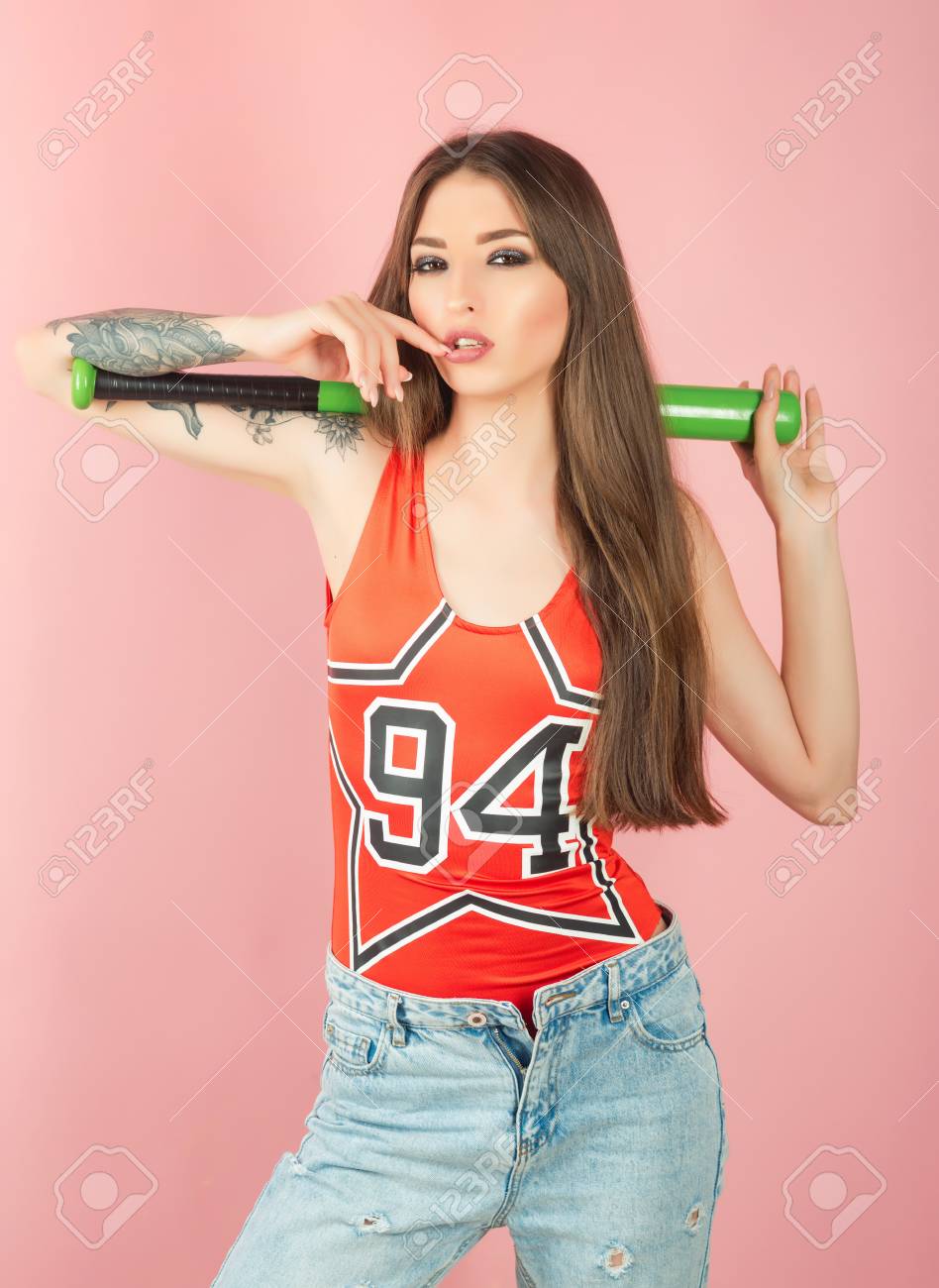 Sport, Workout, Training, Gym. Woman baseball bat workout