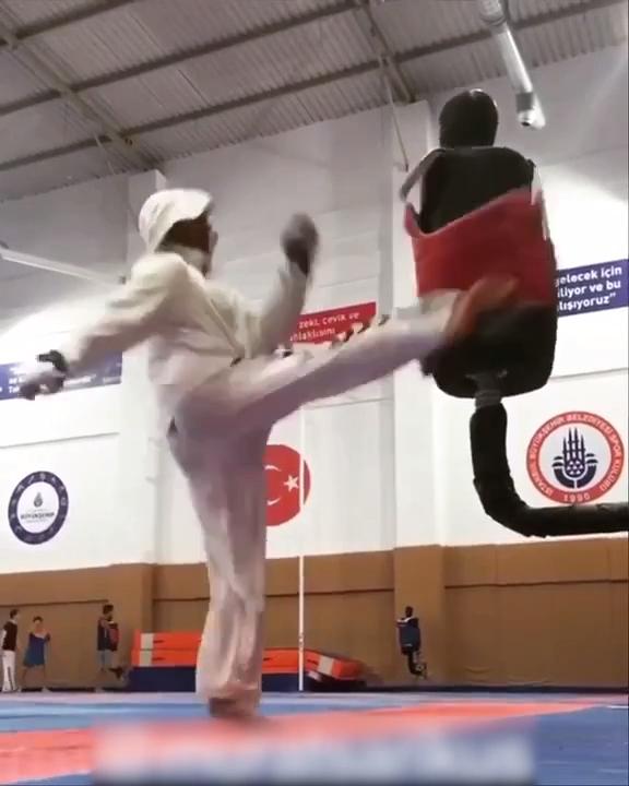 Girl Scorpion Kicks Training Dummy karate kicking dummy