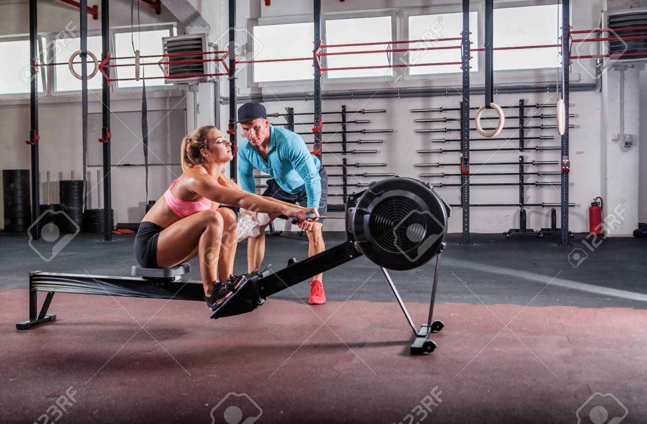 Girl Training On Row Ergometer Machine ergometer machine