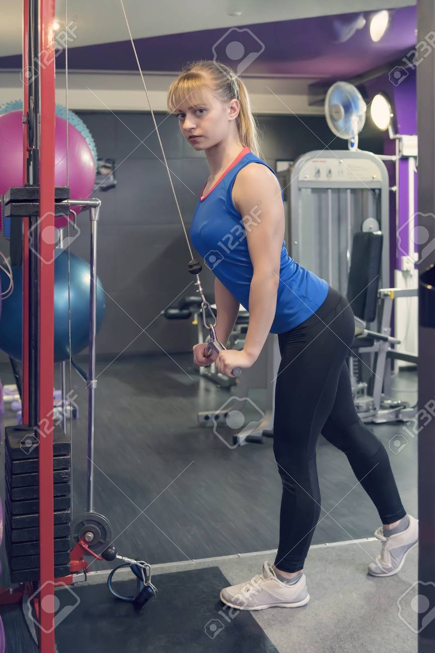 Female Athlete On Rowing Machine On hand rowing machine