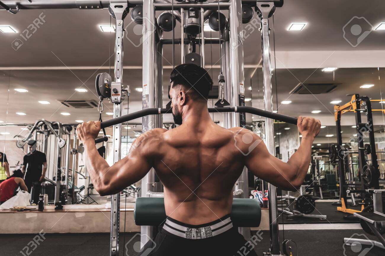 Fit Man On Lat Pulldown Machine At The pull down weight machine
