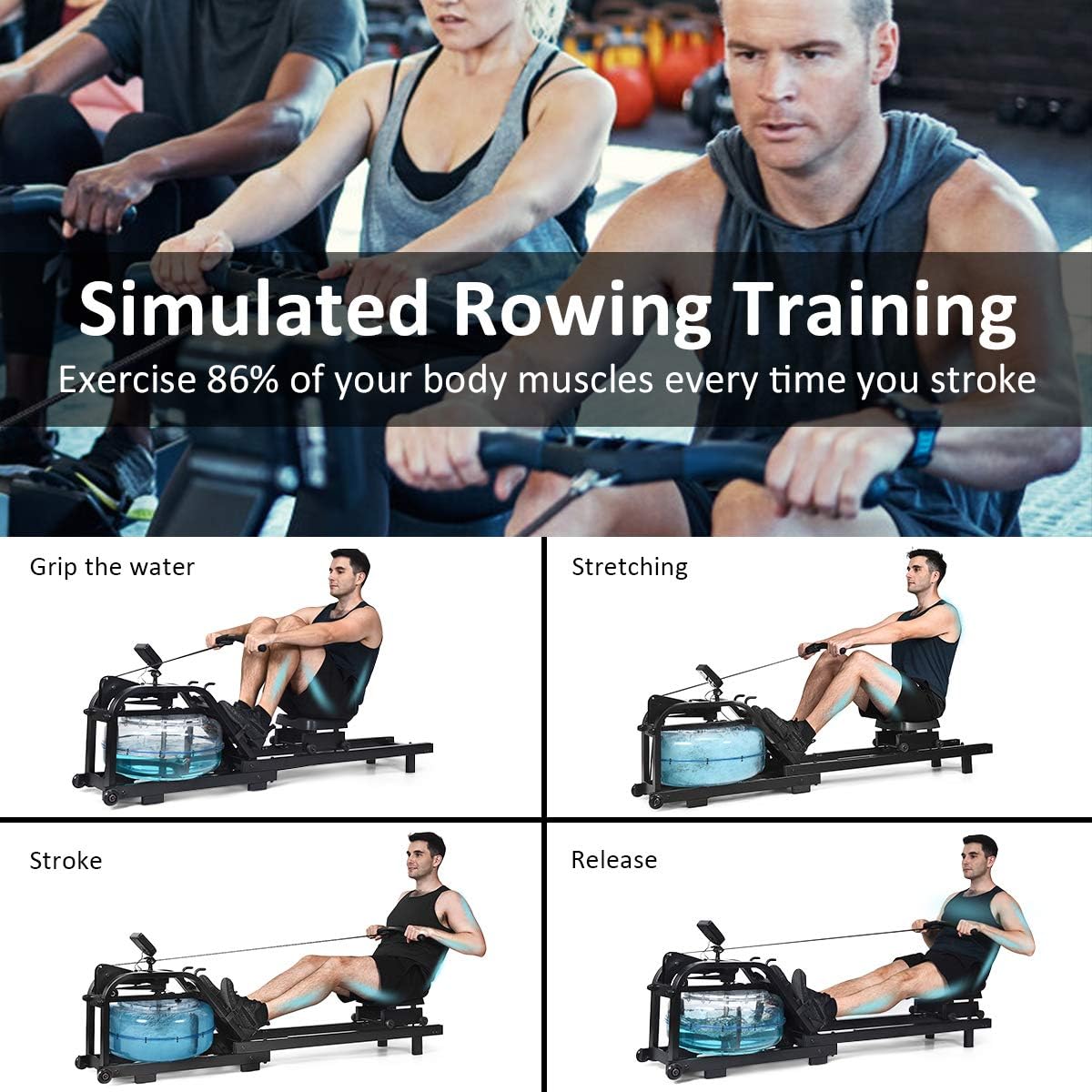 GYMAX Water Rowing Machine, Water Rower gymax rowing machine