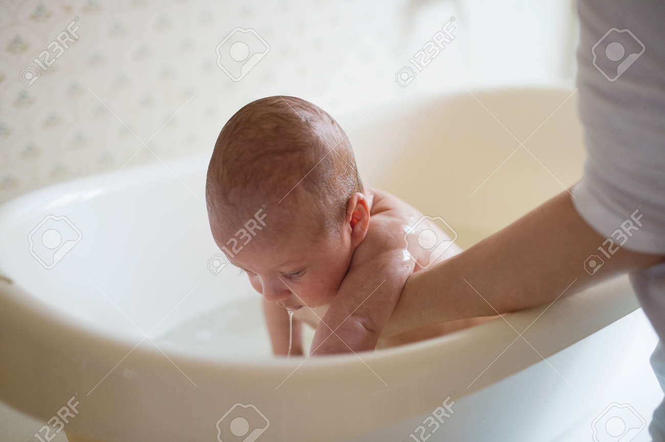 Unrecognizable Mother Bathing Her Son small plastic bat