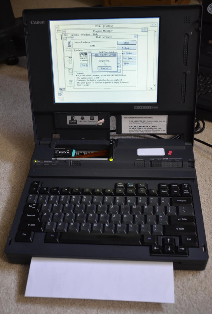 In 1993, Canon created a laptop with a printer that hooks up to laptop