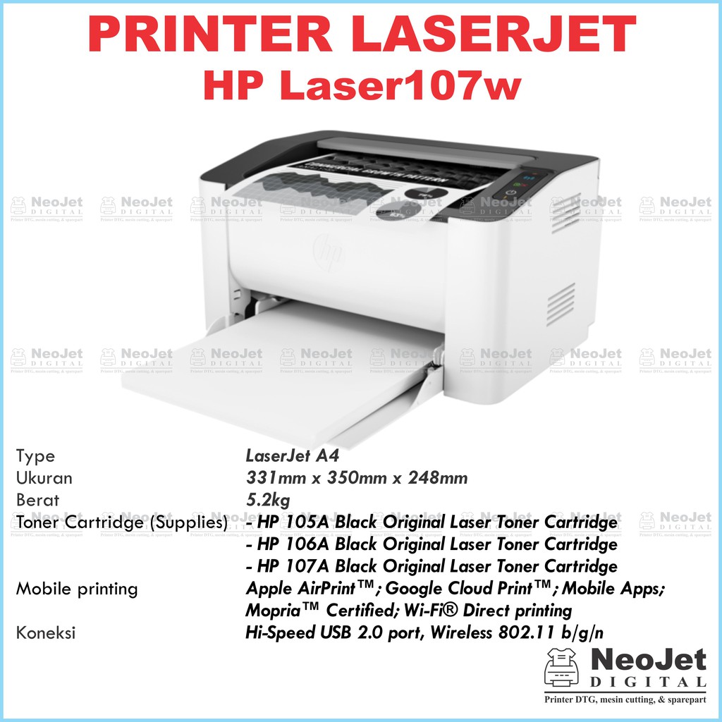 Printer HP Laser 107w Wifi Mono A4 hp m107a printer