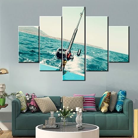 5 Panel Pictures Fishing Tools Wall Art quality prints of artwork