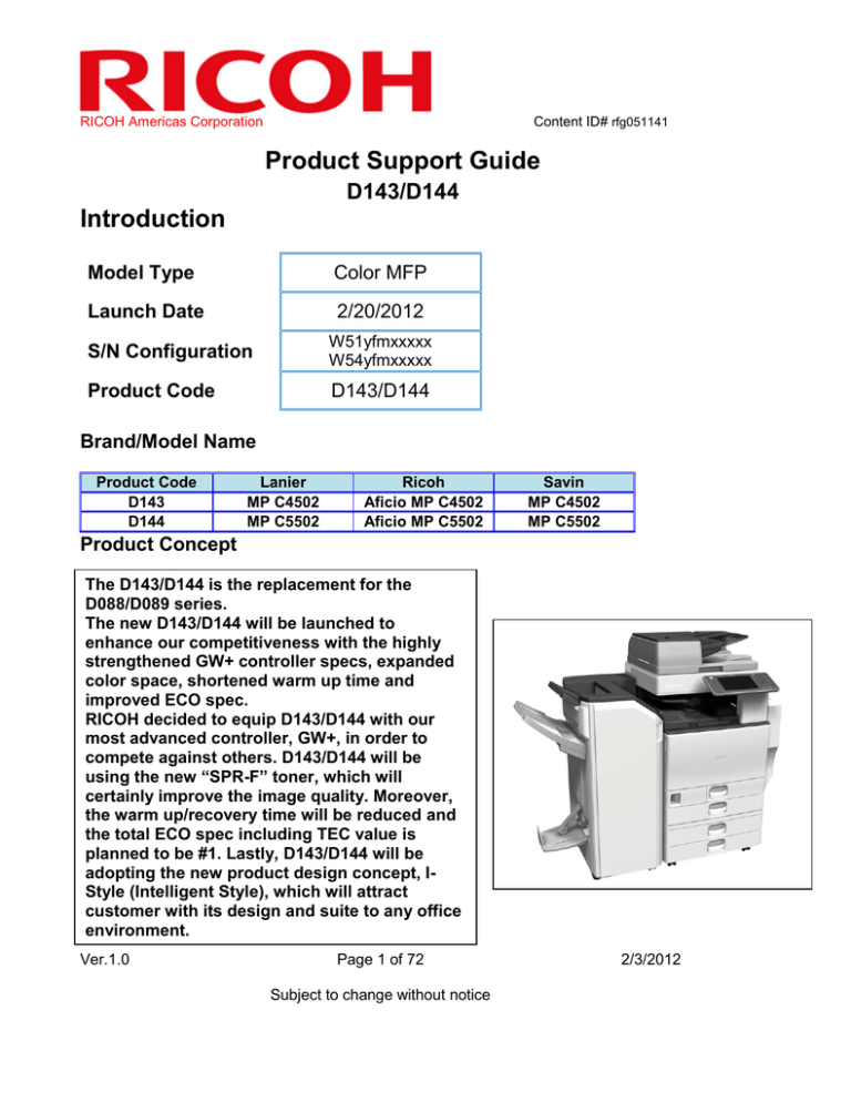 Ricoh Aficio MP C4502A Specification ricoh aficio mp c4502a