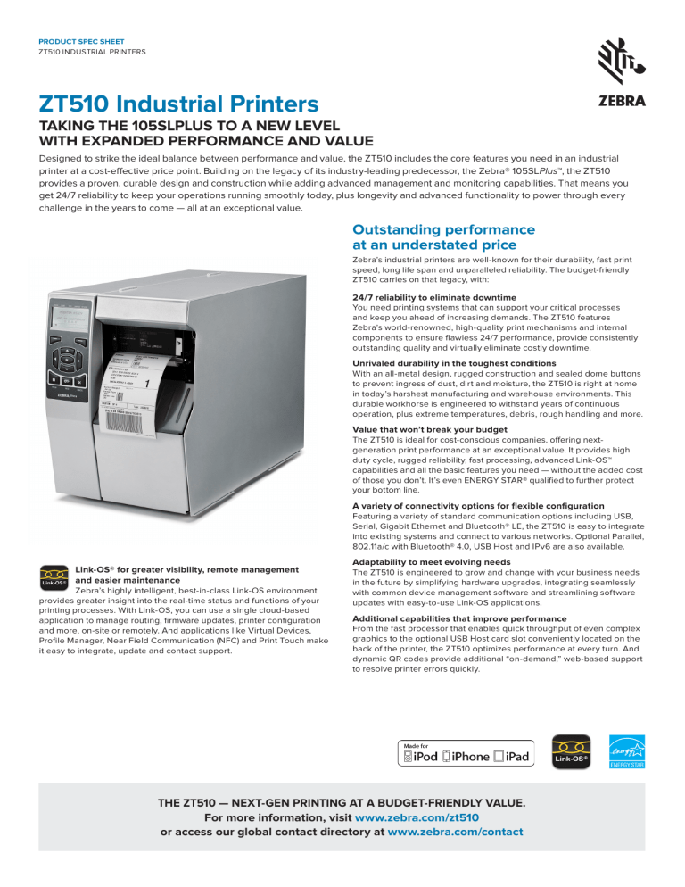 ZT510 Industrial Printers | Manualzz zt510