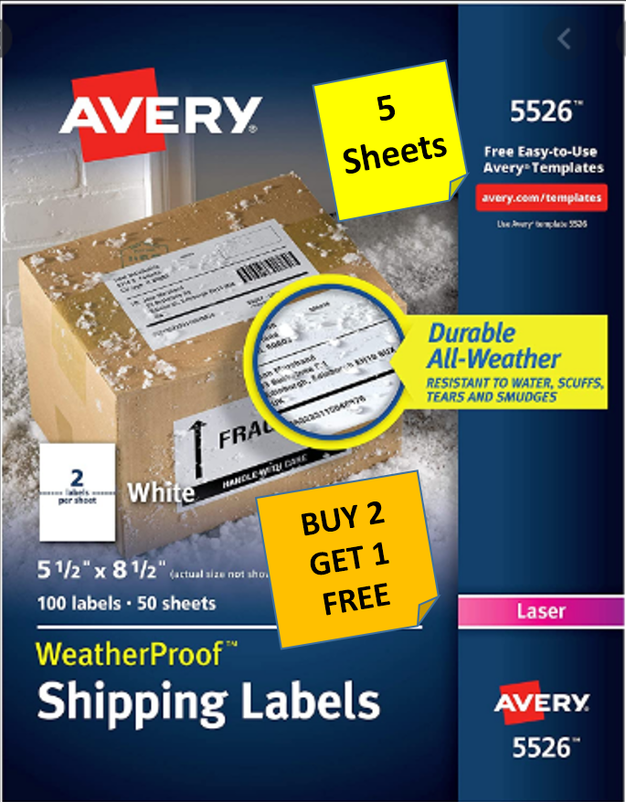 4 Sheets] Avery 5526 WeatherProof Half avery half sheet labels