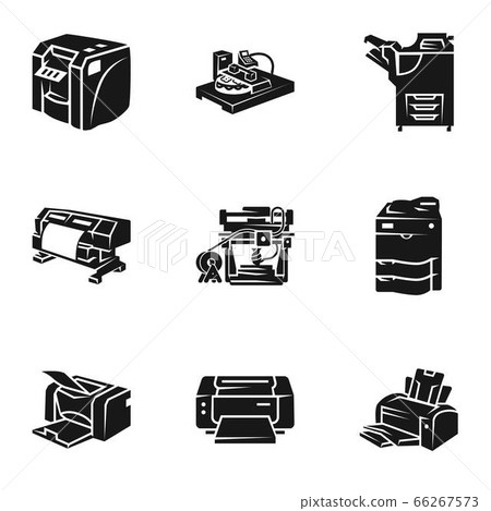 Laser printer icon set, simple style simple laser printer