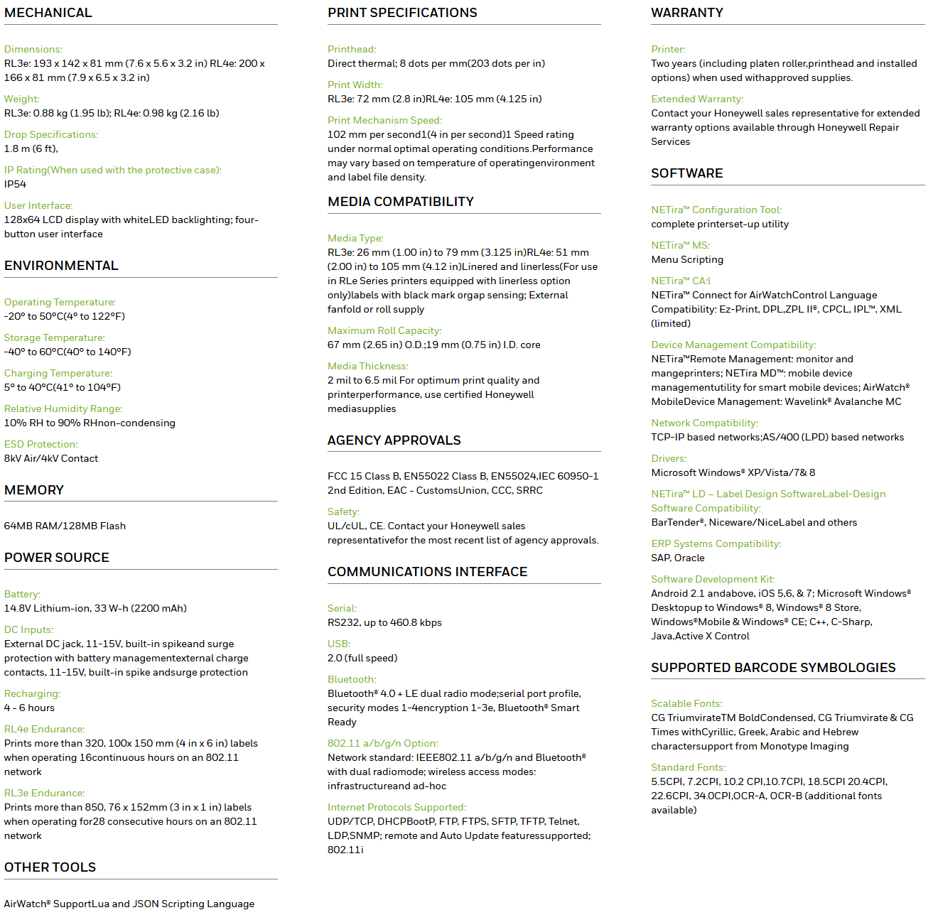 Honeywell RL3e Mobile Printer | Mobile rl3e