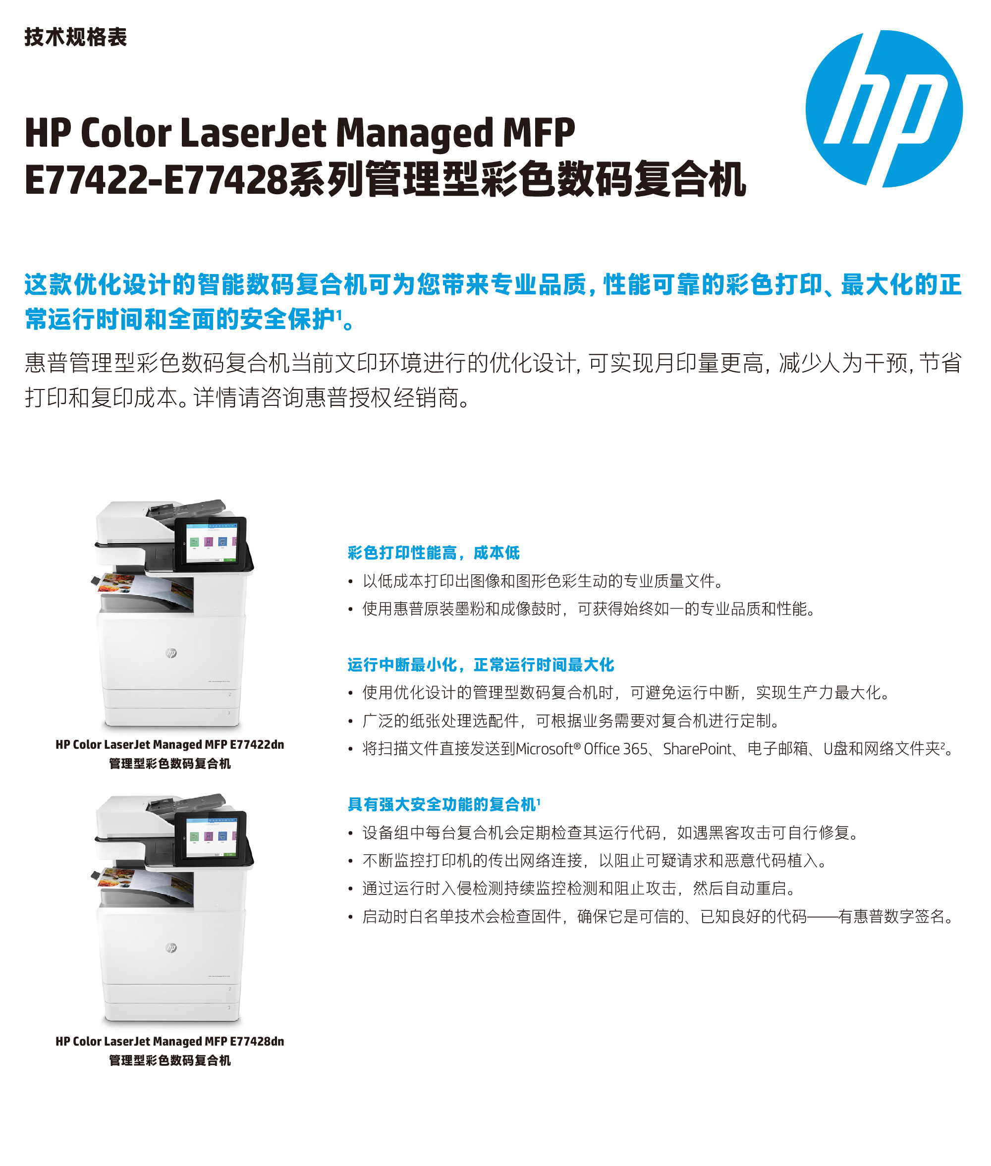 惠普知识树 hp color laserjet managed mfp e77422dn