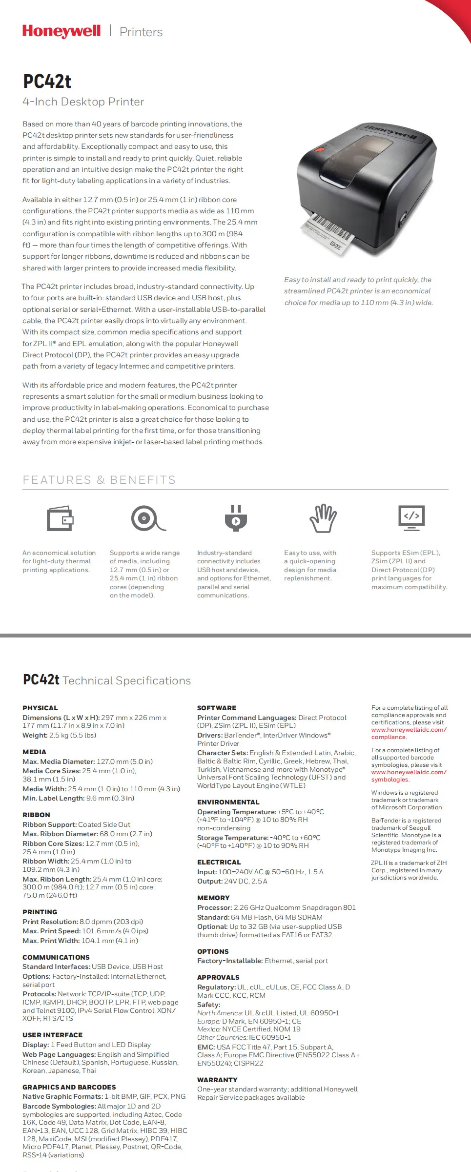 美國Honeywell PC42T PLUS 熱感熱轉條碼列 bartender honeywell pc42t