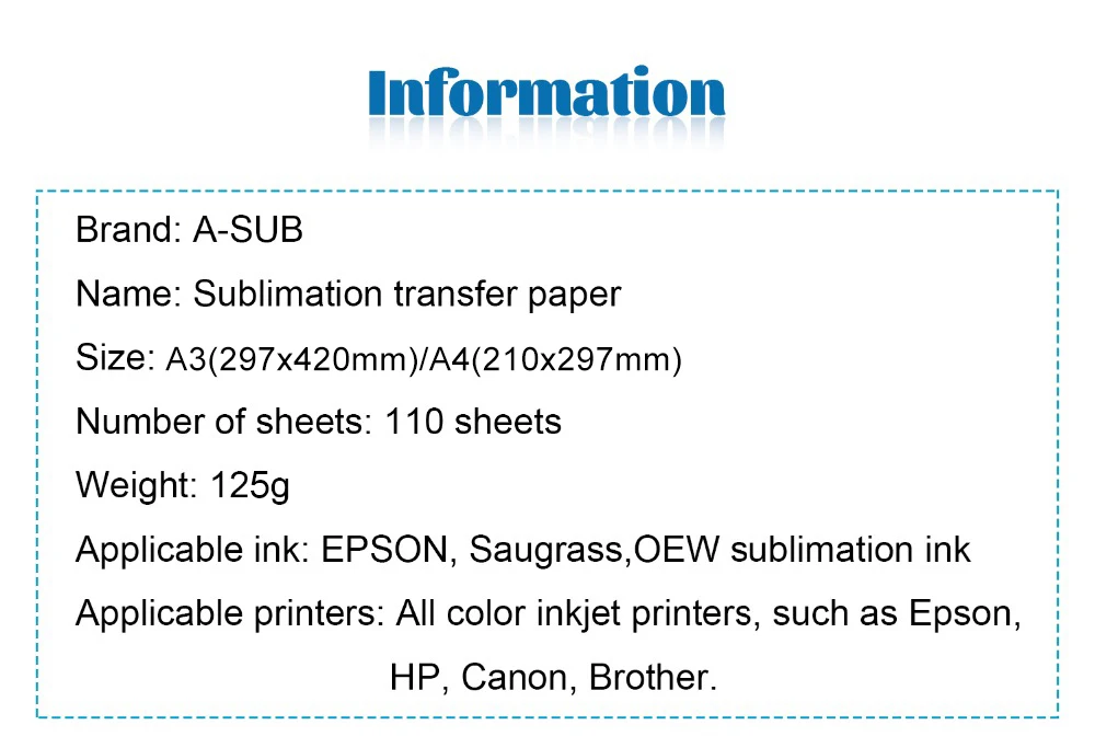 A-SUB 50 Sheets 125g 8.5x11 Dye 125g sublimation paper