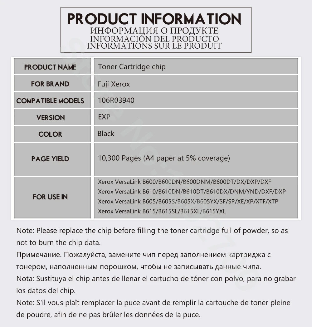 12PCS 106R03940 Toner cartridge chip b605x