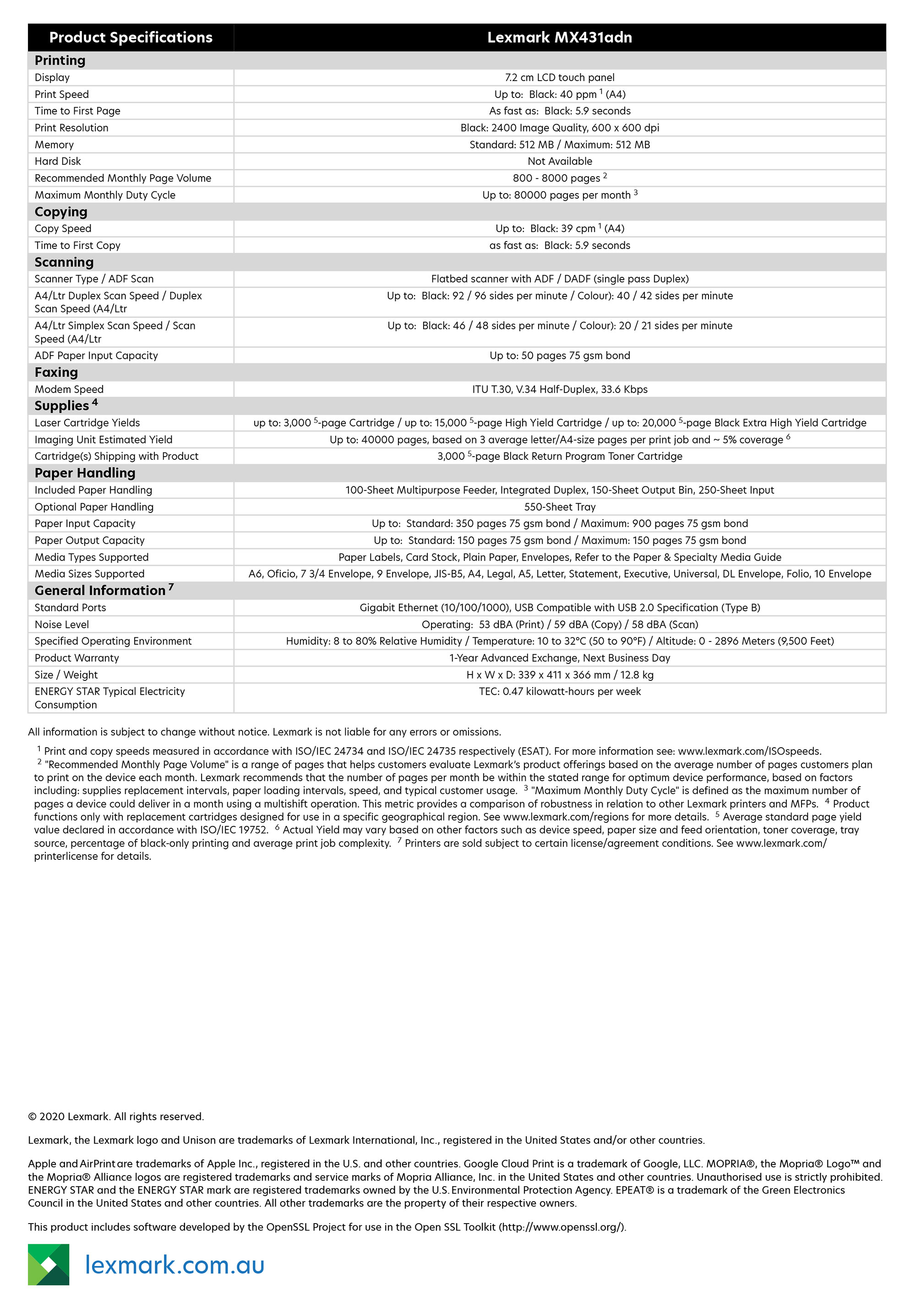 Lexmark MX431adn A4 Mono MF Printer mx431adn