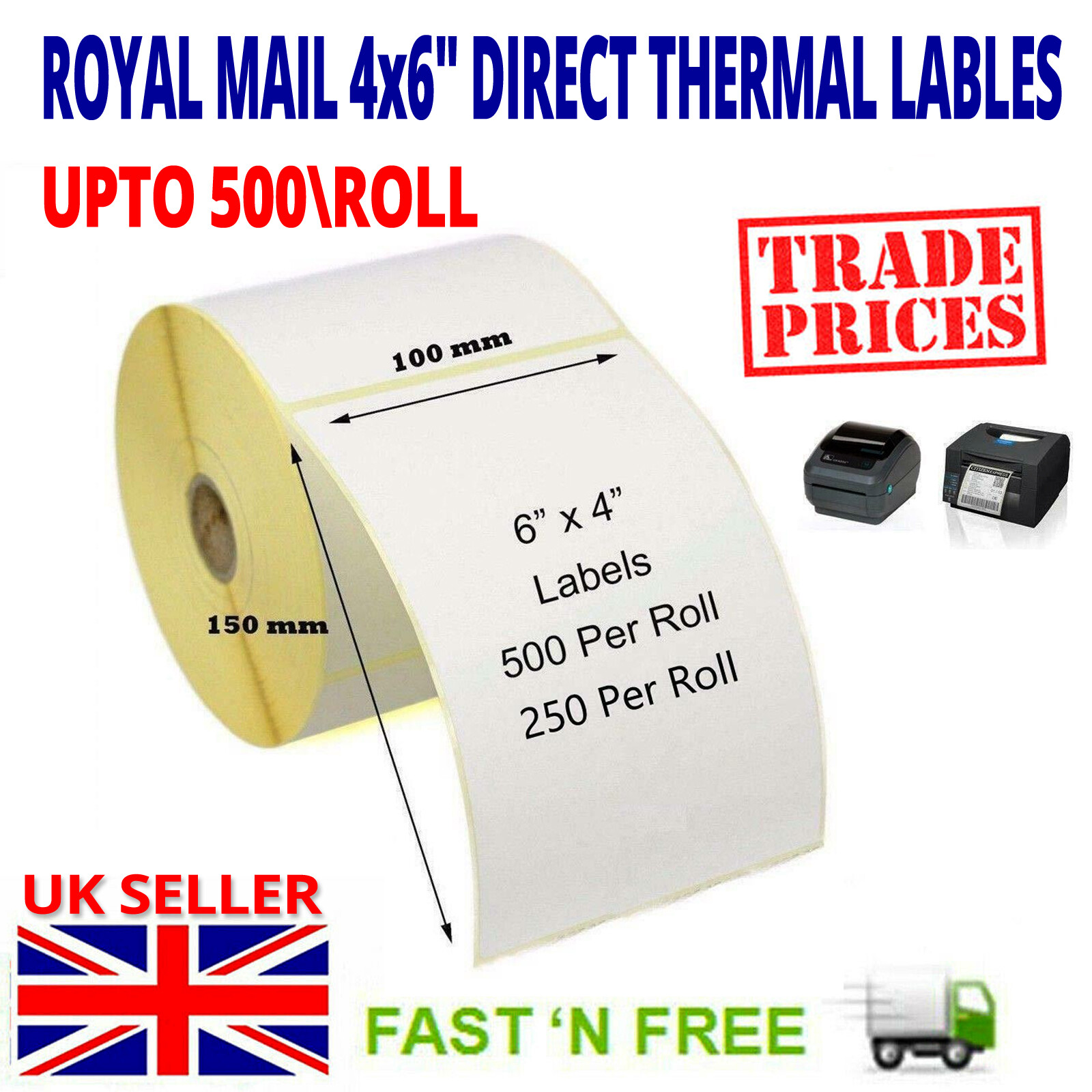 500 WHITE Thermal Labels Roll ZEBRA royal mail zebra