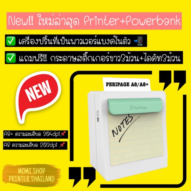 👍🏻Peripage A8 รุ่นใหม่ล่าสุด ดีที่สุด เมนูไทย peripage a8