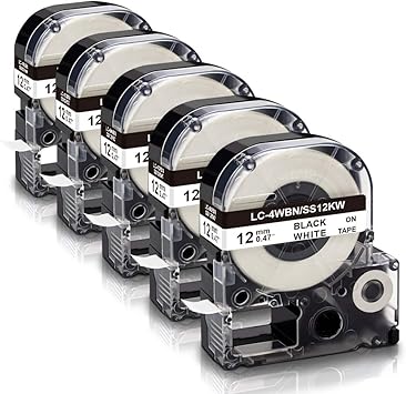 Black on White Label Tape Compatible epson 12mm label tape