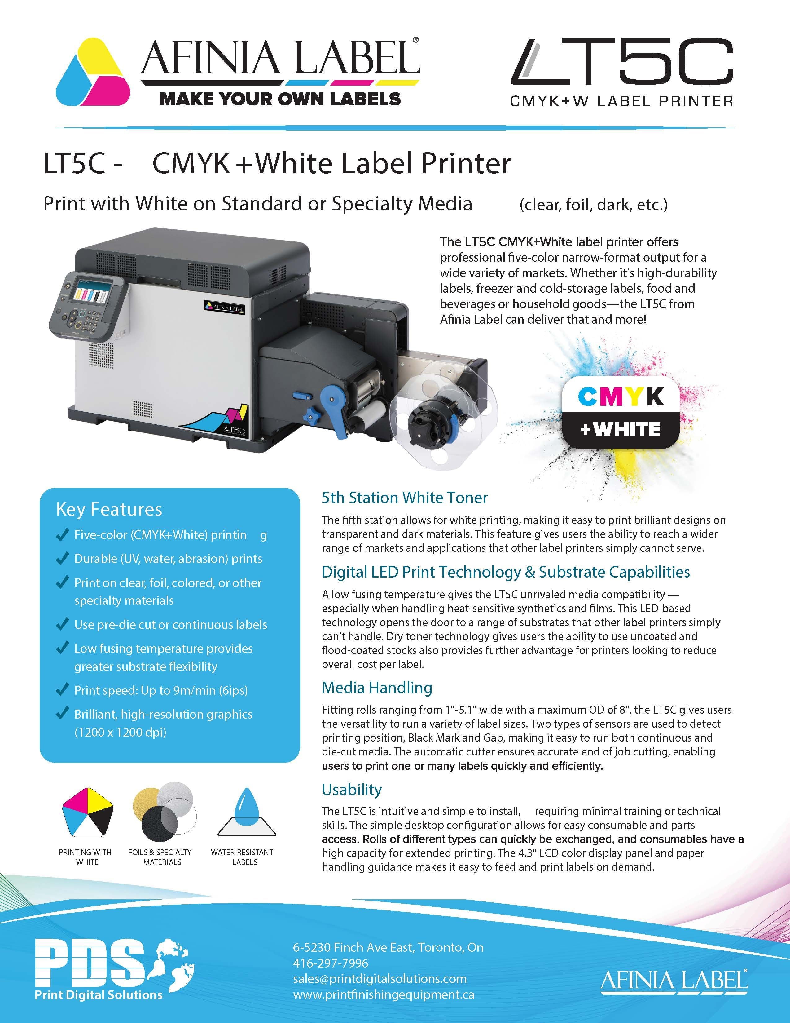 Afinia LT5C CMYK + White Label Printer