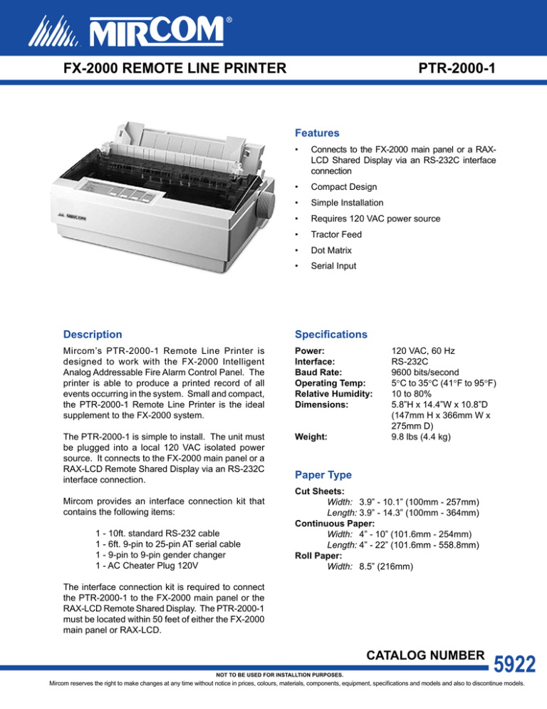 fx-2000 remote line printer ptr-2000-1 line printer is