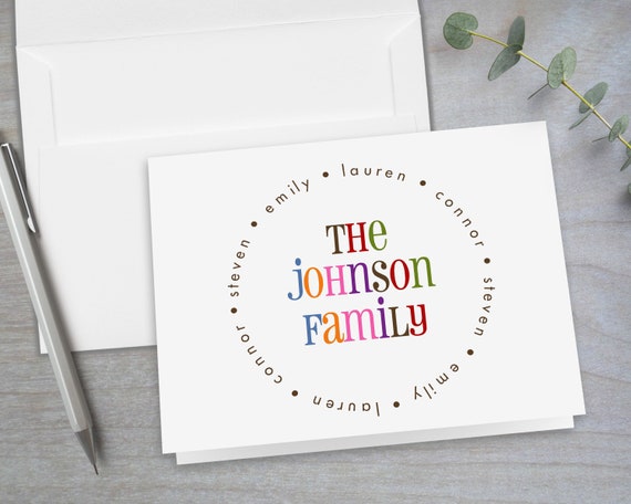 Colorful Family Name Personalized personalized folded cards