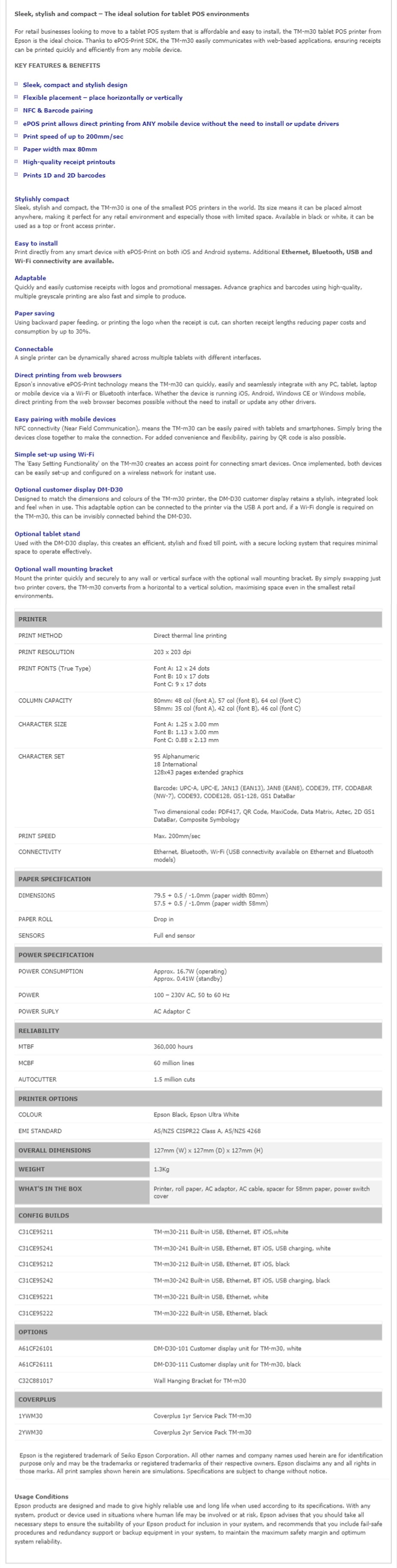 Buy Epson TM-M30 Thermal Receipt 2hv27aa
