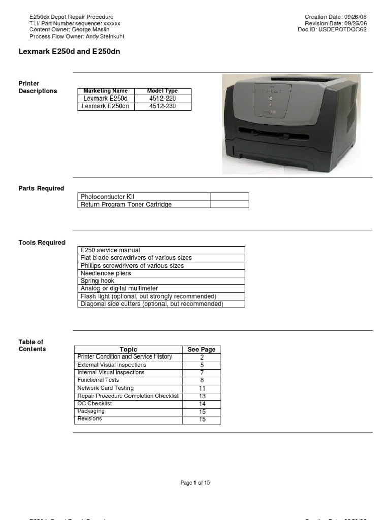 LEXMARK E250 Depot Repair Rev092606 lexmark e250dn