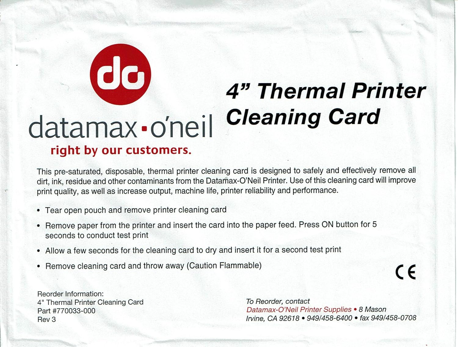 Intermec 24 pack Thermal Printer thermal printer cleaning card