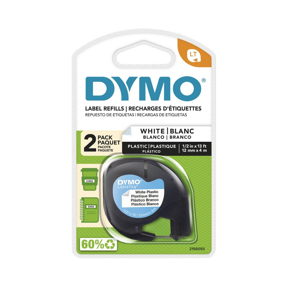 DYMO LetraTag Plastic Label Tape 12mm dymo black white
