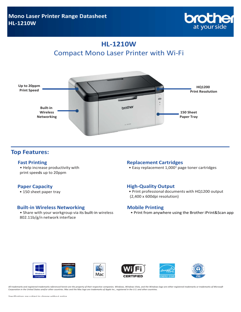 HL-1210W - 브라더 공식 온라인 스토어 1210w