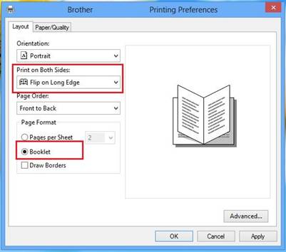 sided or booklet print in Windows print on both sides flip on short edge