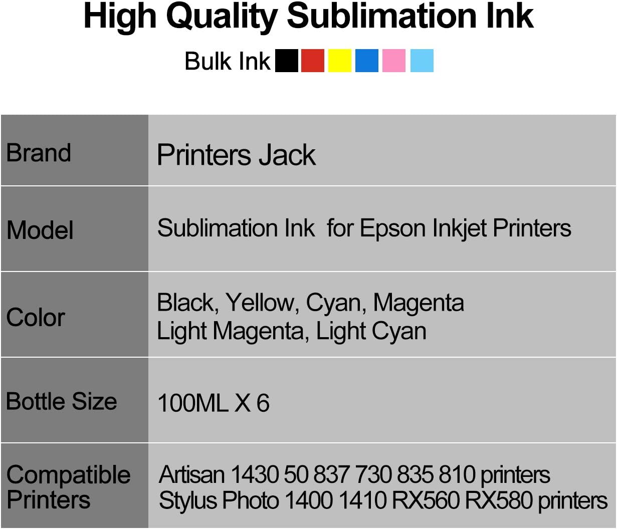 Printers Jack 600ml Sublimation Ink printers jack icc profile