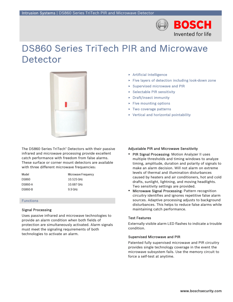 DS860 Series TriTech PIR and Microwave ds860