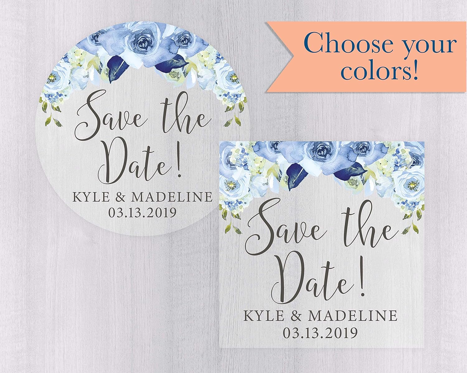 Save The Date Clear Floral Wedding print personalized stickers